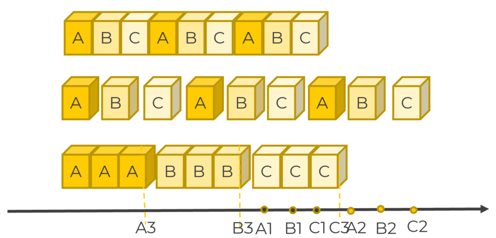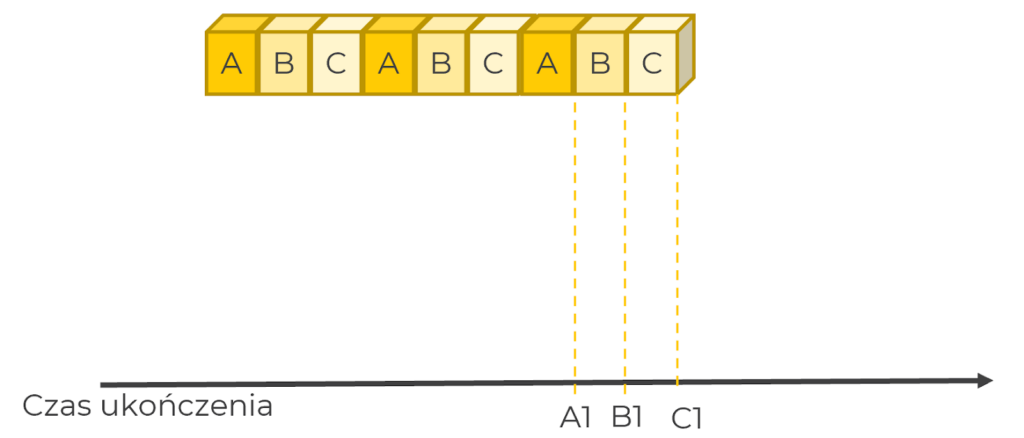 Kolejną cechą firm działających w rytm Agile jest umiejętność zdecydowania co jest aktualnie ważne i skupienie się na jednym najważniejszym celu. Często w biznesie zachowujemy się jak osoba na diecie wchodząca do cukierni. Tu wszystko jest pyszne. Każdy klient to dodatkowy przychód, każdy projekt jest rozwojowy, a każdy pomysł wspaniały. I tak jest. Ale jeśli w tej cukierni biznesu będziemy próbowali zjeść wszystkie ciastka równocześnie to zamiast walorów smakowych poczujemy tylko ból brzucha. Najczęstszy błąd, który jest popełniają firmy to prowadzenie wielu projektów równocześnie przez jeden zespół. Ludzie mogą pracować jedynie sekwencyjnie. W związku z tym osoba, która pracuje nad 3 projektami równocześnie najprawdopodobniej będzie wykonywała prace na przemian i z matematycznych wyliczeń wynika, że zadania będą gotowe w takich terminach.